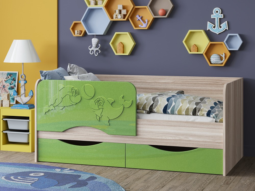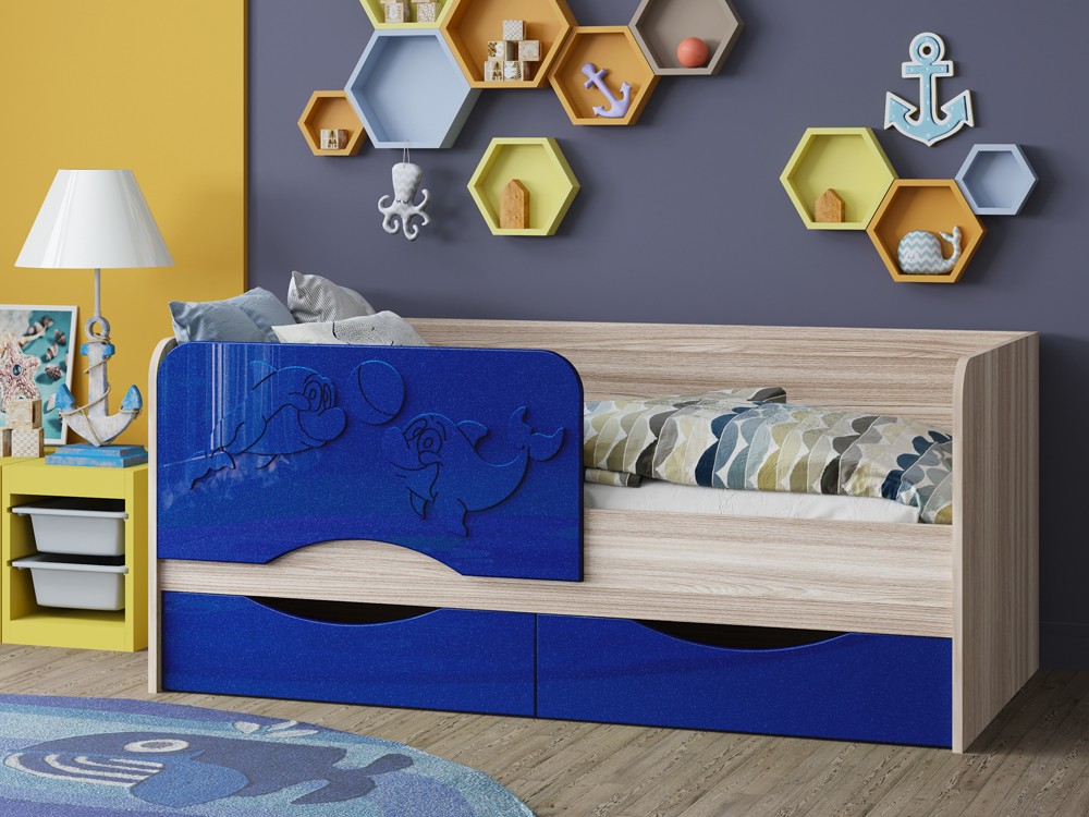 Детская кроватка «Дельфин-2 » - превосходный выбор для детской комнаты Вашего ребенка. Кровать оснащена бортиком с накладкой с изображением двух веселых дельфинчиков, от которых поднимется настроение у Вас и Ваших детей. Бортик является универсальным, его можно закреплять как слева, так и справа, он защитит Вашего ребенка от возможного падения во сне. Снизу кроватки находятся два выдвижных ящика, в которых удобно хранить детские игрушки, одежду или белье.
