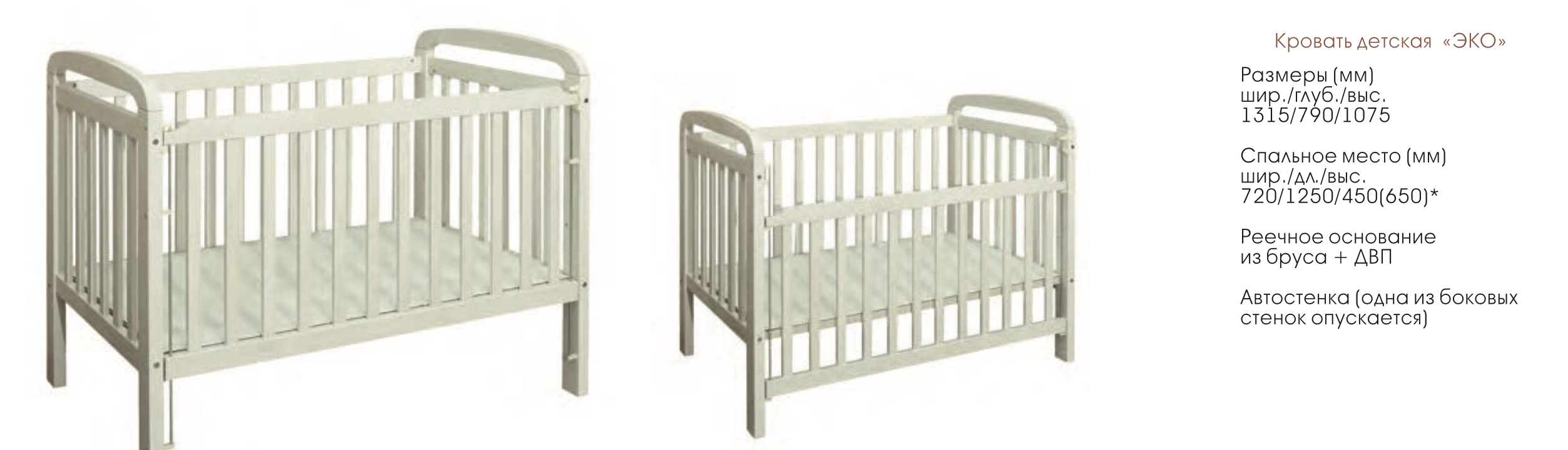 —Детская Кровать Эко-Массив Малыш/Ш-1315 х Г-790 х В-1075 мм