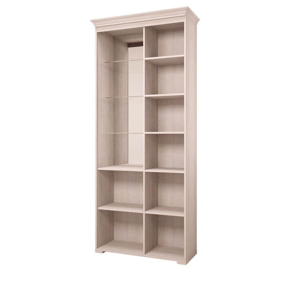 Шкаф для книг из серии«Афродита» - незаменимый элемент любой гостиной. За распашной дверцей Вы с комфортом разместите книги и журналы, а стеклянная часть станет лучшим местом для сервиза и предметов декора - тех вещей, которые хочется держать на виду. Характеристики: Размер, мм: 911х2186х372 Материал: ЛДСП, МДФ в профиле Цвет: Лиственница сибио Особенности: стиль Прованс декорированные фасады ажурные кованые ручки большое количество полок фасад с декорированным стеклом рекомендуемая нагрузка: на полку - 5 кг, на стеклянную полку - 2 кг Срок гарантии - 12 мес.