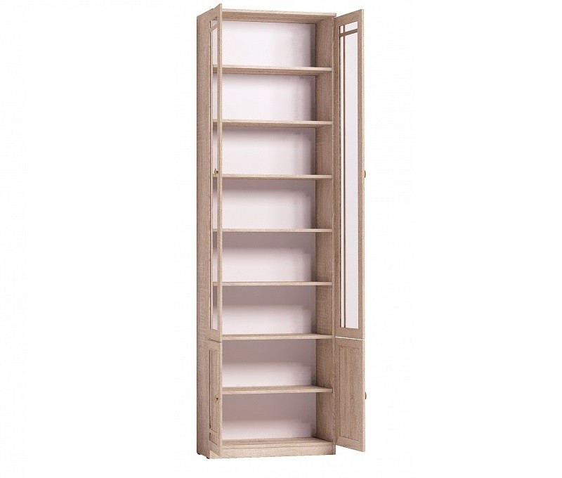 Книжный шкаф Sherlock 32 по достоинству оценят любители печатной литературы и владельцы большого количества книг и журналов. Это высокая распашная модель для комнаты высотой не менее 240 см. Шкаф комплектуется регулируемыми по высоте полками: для этого необходимо установить полкодержатели в подготовленные отверстия.Максимально допустимая нагрузка на каждую полку составляет 13 кг. Благодаря комбинированномустеклом фасаду модуль не выглядит громоздким. Тонированноестекло защитит все Ваши книги и другие вещи, которые Вы решите хранить в шкафу, от вредного воздействия солнечных лучей и загрязнений. Модель прекрасно сочетается со скошенными шкафами Sherlock 34 и 35. Особенности ЛДСП 16 мм, кромка ПВХ рамочные фасады из профиля МДФ декор "дуб сонома" тонированное стекло 4 мм наполнение из регулируемых по высоте полок обязательное крепление к стене за подвесы