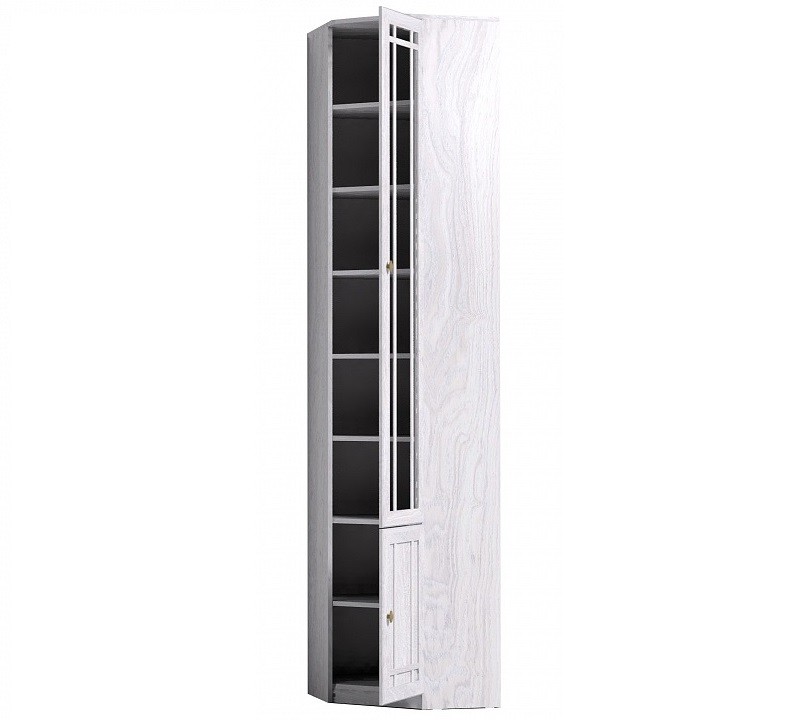 Угловой книжный шкаф - практичное решение для малогабаритных гостиных, библиотек или рабочих кабинетов, где каждый свободный сантиметр важно использовать рационально. Конструкция и габариты шкафа позволят Вам организовать полноценную зону для бережного хранения литературы и сопутствующих вещей. Модуль возможно установить в комнате, высота полотка которой не менее 240 см. Наполнение - комплект регулируемых по высоте полок. Фасад шкафа декорирован тонированным стеклом, свойства которого защитят Ваши книги от вредного воздействия лучей света и загрязнений. Шкаф для книг Sherlock 33 обязательнокрепится к стене за подвесы и межсекционной стяжкой с другими шкафами в комплекте. Особенности ЛДСП 16 мм, кромка ПВХ рамочные фасады из профиля МДФ тонированное стекло 4 мм декор "ясень анкор светлый" комплект регулируемых по высоте полок обязательное крепление к стене за подвесы