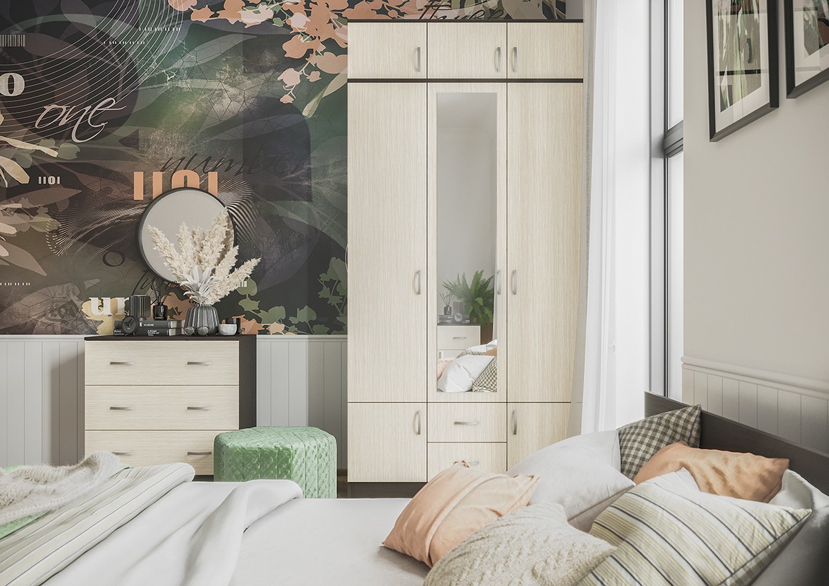 Шкаф Рига 3-х Створчатый с Зеркалом ШК-3/Разные Цвета (Ш-1200 х В-2120 х Г-520 мм)